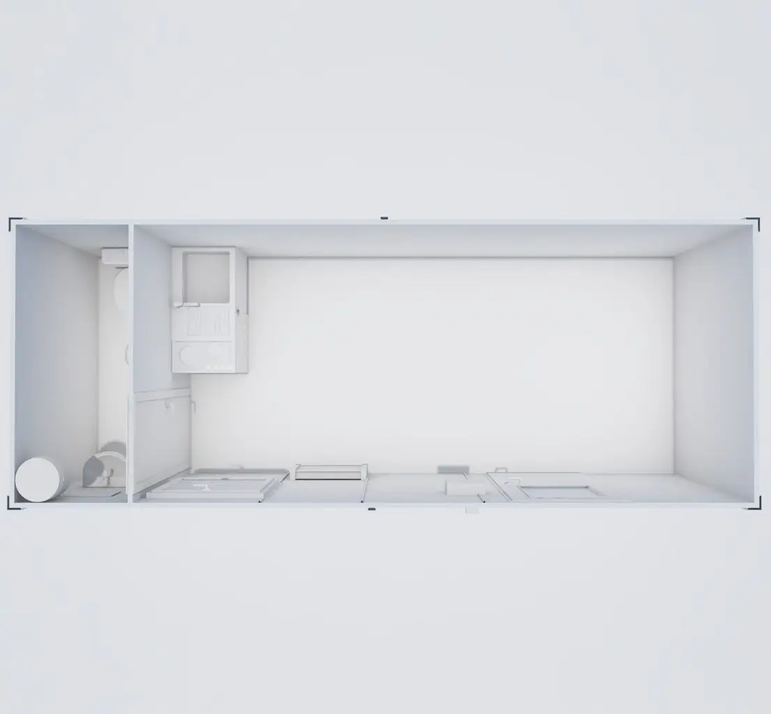 ACCESS est également personnalisable : vous pouvez choisir plusieurs options telles qu’une kitchenette, des sanitaires, un lavabo, ou une douche, et adapter les configurations internes selon vos besoins spécifiques. Avec des systèmes de levage et de manutention intégrés, ACCESS permet une installation simple et rapide.